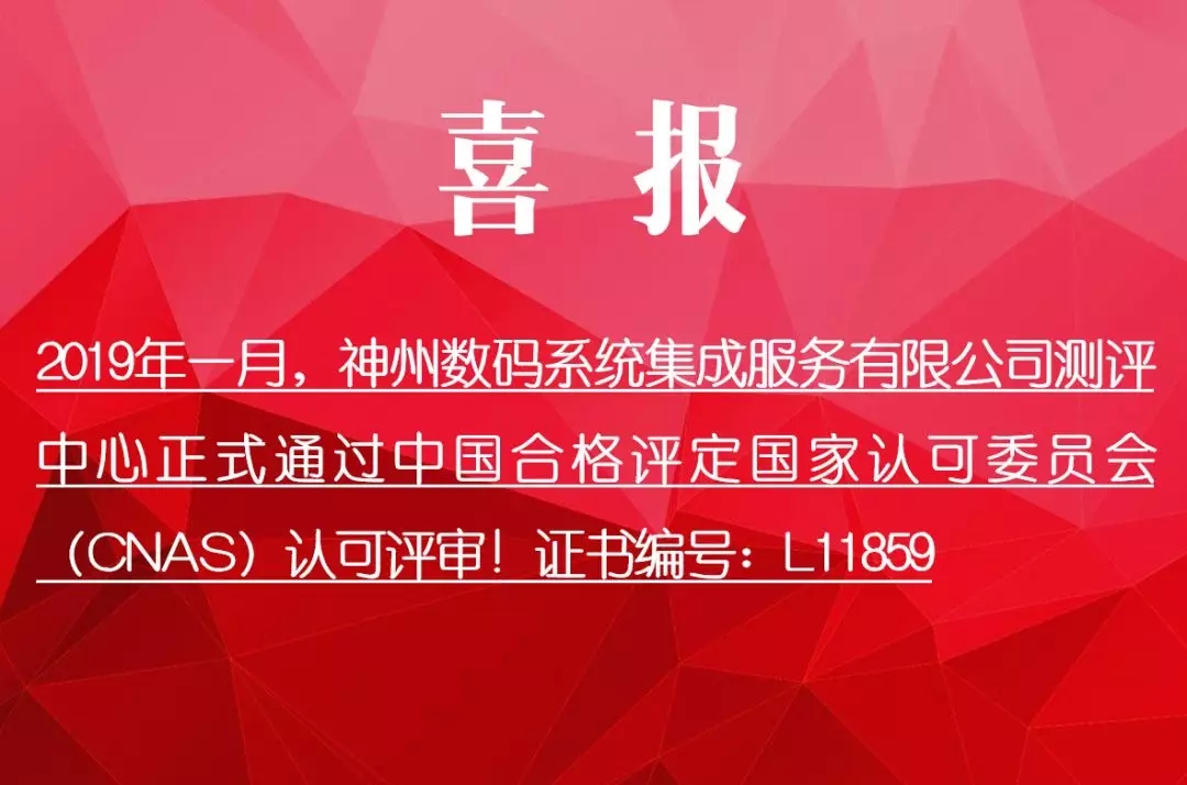 2019年1月,710公海寰宇系统集成服务有限公司软件测评中心(下简称测评中心)通过中国合格评定国家认可委员会(CNAS)的正式认可,标志着测评中心的检测设备、设施、管理和技术得到国家认可,在软件产品及信息安全产品检测方面达到国家一流水准,实验室数据将得到法律、政府的共同承认。