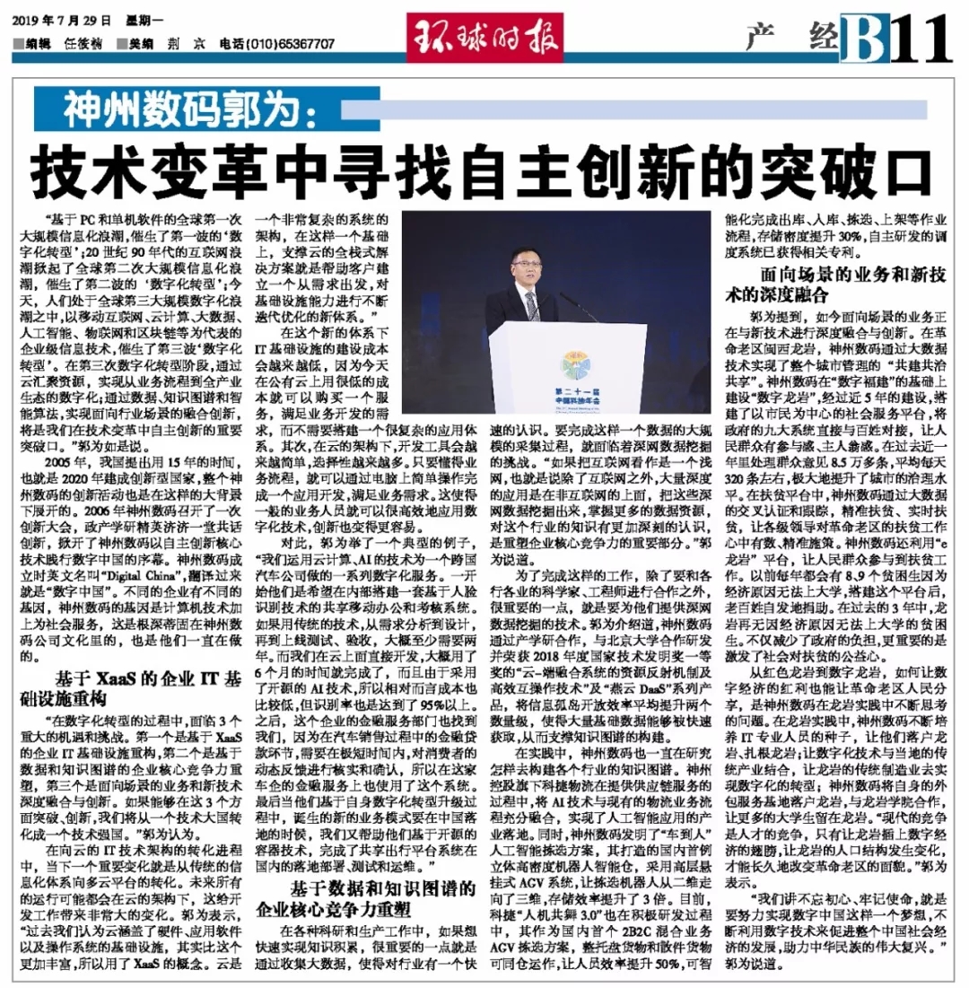 2019年7月29日,《环球时报》刊载题目为《710公海寰宇郭为:技术变革中寻找自主创新的突破口》的深度文章。该文节选自郭为在第二十一届中国科协年会闭幕式上发表的主题演讲。